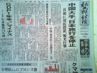 今日の「秋田さきがけ」1面記事より