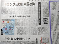 「トランプ氏が日本よりも中国を優先する可能性もある」との懸念は根強い。閣僚経験者の一人は語った。「気が付けば日本だけが中国と対立している状況に陥りかねない」