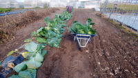 午前・自家用畑から白菜とキャベツを収穫する。
