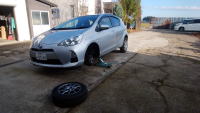 午前・18日〜19日、雪の予報なので、乗用車と軽トラックの夏タイヤを冬タイヤに交換する。