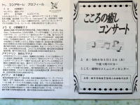 午後1時30分〜3時30分・横手市結核予防婦人会雄物川支部主催の「こころの癒しコンサート」に出席。出席者・約100名。会場・雄物川コミュニティセンター。出演・トレ コンアモーレ。コンアモーレは音楽用語で「愛情を持って」の意味。うた・小野崎彰子さん マンドリン・荻田ヒサ子さん ピアノ・木下裕美さん。