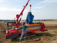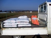 西瓜畑に1トン入りの堆肥5袋を運んでもらう。晴れた日に西瓜畑に散布して戴き、その後トラクターで耕起する。美味しい西瓜を採るには土づくりから・・・