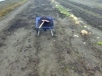 終日、西瓜畑に肥料を散布する。肥料袋に20キロの肥料を入れて背負い、床の長さ160mを何回も往復して人力で散布。マスクをして仕事をする。マスクは肥料の粉末を吸わない為・・・