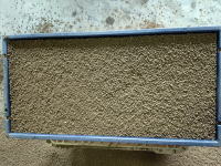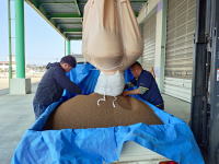 午前・水稲育苗箱に土入れ。