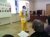 午前10時30分〜11時30分までJA秋田ふるさと女性部雄物川支部(支部長・佐々木礼子)主催の「女性部祭」で講演。同支部では何回も講演でお世話になっている。有難い・感謝・・・出席者・30名。場所・JA秋田ふるさと営農経済部 2階会議室。ピンピンコロリ・選挙漫談・りくりゅうの血液血液型分析の話をする。反応は大変良かった。