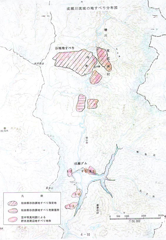 ■レポート図4−6のダムサイト周辺地質平面図では,周辺の地すべり地形が紹介されておりますが,この程度の地すべり状況というのはよくあるケースなのでしょうか? 地すべり防止の対策というのはどのような工事になるのでしょうか?