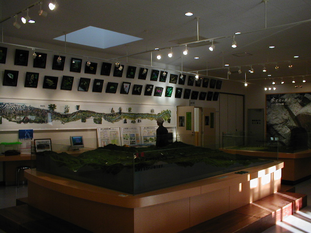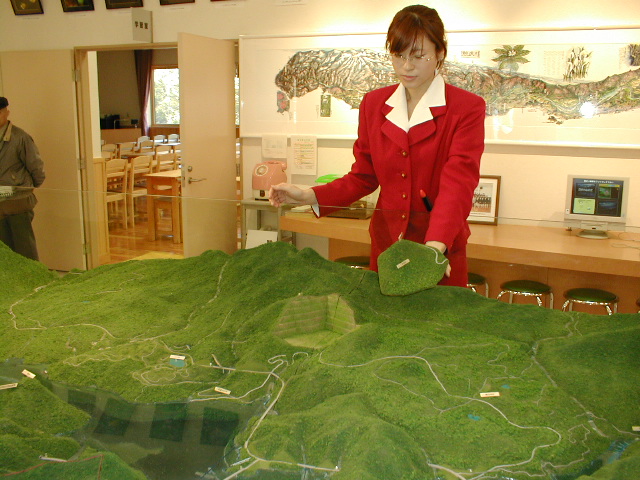(↑案内嬢が手にしているのが原石山の模型)