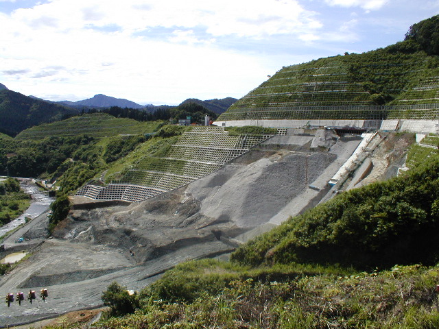 小又川をせきとめ,総貯水容量7810万トンの水を湛える巨大ダム。堤体積585万立方メートルは完成すれば玉川ダム(115万立方メートル)をぶち抜いて秋田県一となる。