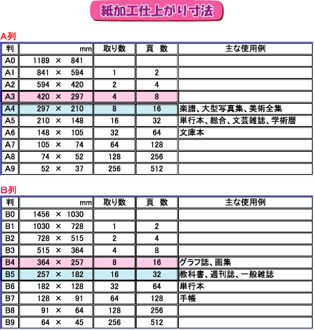 なお、A4判はB判からですと11枚取れます。A3ですと5枚取れますが、