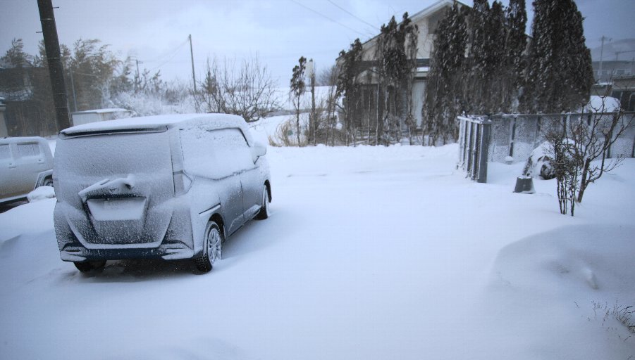 | 今朝は寒波。 積雪は大したことはありませんが風雪がひどい朝になりました。 今日は餅つき大会と上町新年会が予定されています。 |