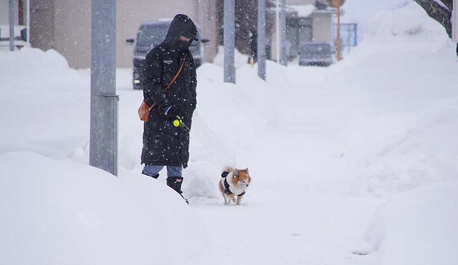 。 最低気温=-2℃、最高気温=1℃、降水確率=朝70%・昼80%・夕方70%