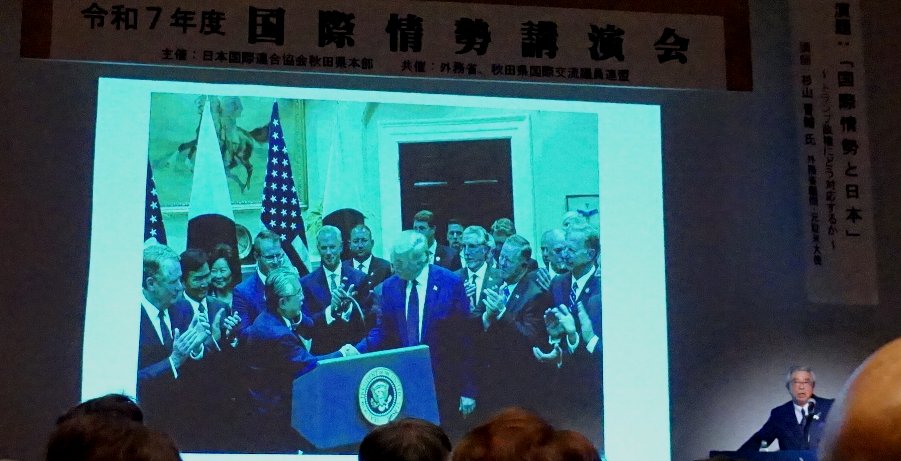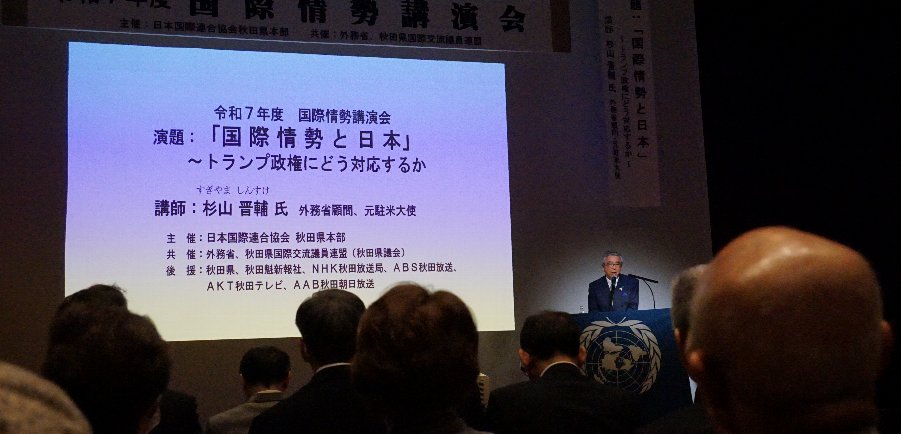 | 今朝は穏やかな朝。10㎝くらいの積雪。 写真は昨日のミルハスで開催された講演会。講師は前駐米大使の杉山氏。 現役時代は外務技官として岸田外務大臣と安倍総理のもとで活躍した人。 トランプ氏が初当選した裏話を話してくれました。 質疑応答では国際連合の拒否権についての質問。杉山氏も話題にしたかった議題のようです。 拒否権の問題の発端は朝鮮動乱の対応だと話してくれました。 |