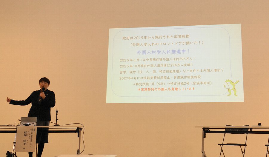 ![]() 岩手大学国際教育センター長松岡教授が外国人の実態について紹介 |