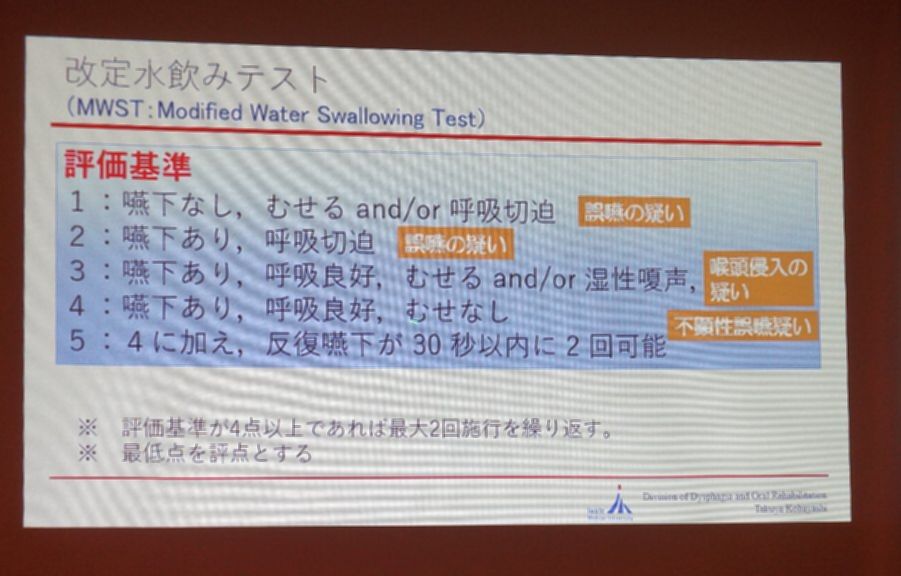 ![]() 誤嚥性肺炎防止のため 誤嚥しているか判断するための簡便チェック方法を紹介 |