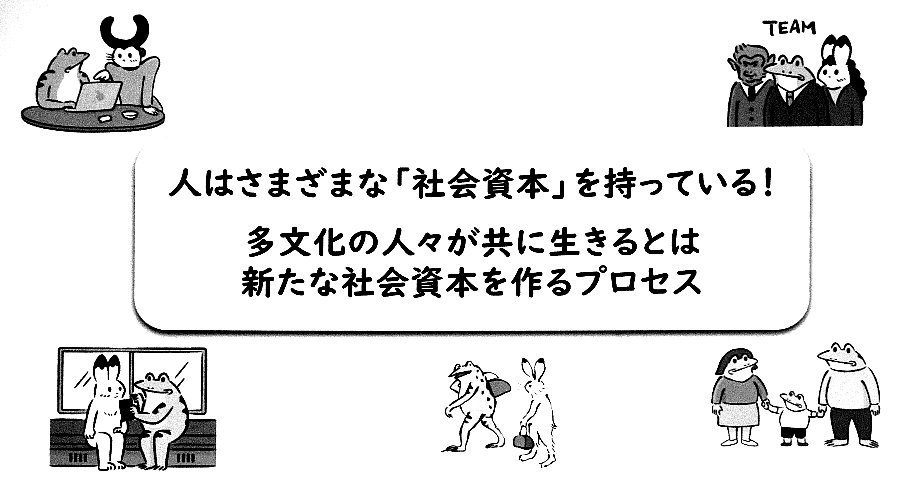![]() 多文化共有する社会では 英語の習得よりも 社会資産(情報交換できる仲間が何人いるか)が重要だそうです |