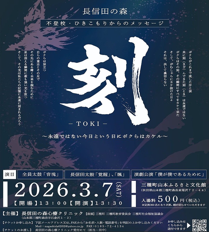 ![]() 三種町の長信田の森診療クリニック主催の太鼓講演活動が3/7で中止するというお知らせがありました |