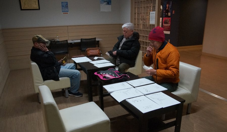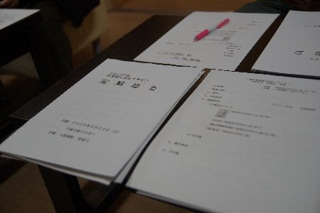 | 今朝は快晴。霜が降りました。 写真は昨夜のクライン定例会。協議は総会の日程と総会資料作製。 |