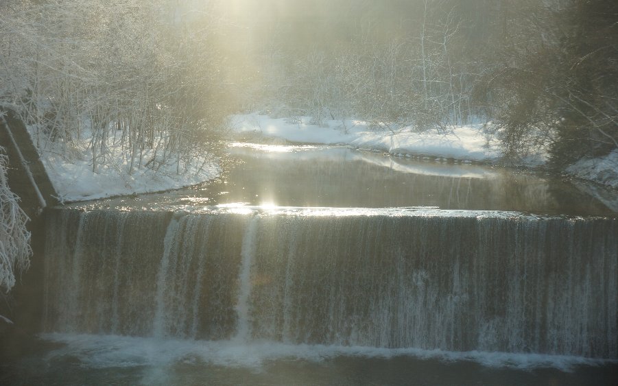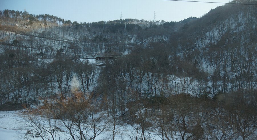 今朝7時の八郎潟町は