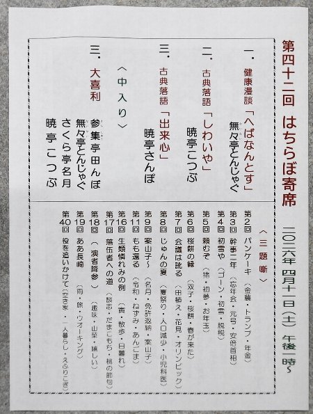 ![]() 第42回 はちらぼ寄席 |