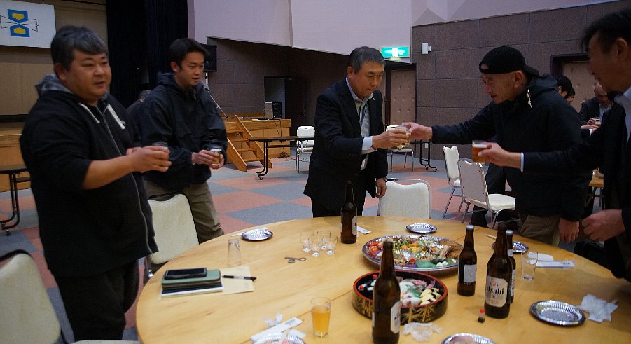 | 今朝は晴れ。寒い朝です5℃。 写真は昨日開催された一日市盆踊り実行委員会。 明日から今日の八郎潟はお休み(10/24-10/24)。上京してきます。 |
