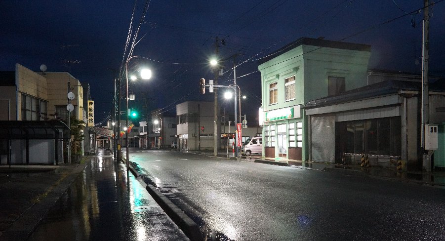 今朝7時の八郎潟町は