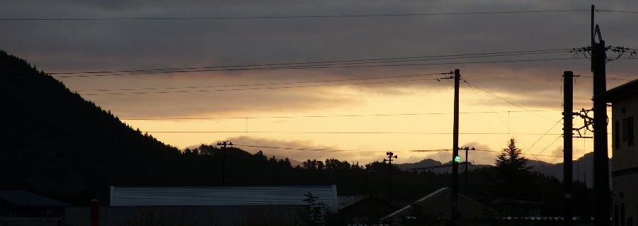 | 今朝は曇り。昨日は立冬。今朝は5℃。 今日ははちパルで開業10周年記念事業、講演会が予定されています。 題名は「新説・八郎とたつ子」。面白そうです。 夜は、沖縄から3人衆が来ていて、歓迎会が予定されています。 |