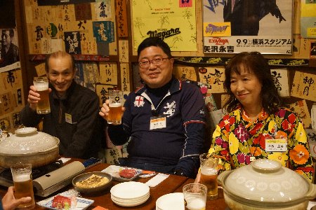 | 今朝は曇り。天気予報は雷雨。沖縄3人衆は男鹿観光の予定。天気が心配。 写真は昨日のはちパル講演会と沖縄3人衆の歓迎会。 帰りの列車時間で短い時間でしたが楽しく過ごさせていただきました。 |