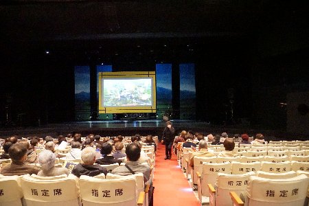 | 今朝はうす曇り。今日も雨模様です。 写真は昨日開催された公民館事業。開業50年を迎えた会場はちょっと寒かった。 |