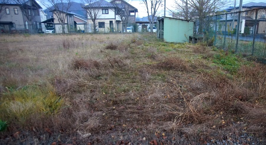 | 今朝は晴れ。昨日の雨で水たまりが出来ています。 近所のテニスコートの雑草が伸びていて熊さんの隠れ場所になりそうなので久しぶりに除草しました。 |