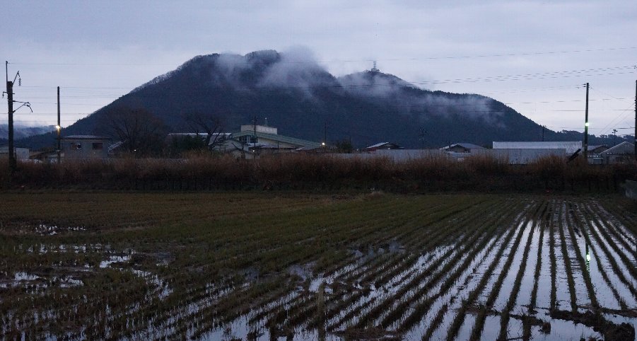 | 今朝は気温が下がったためか、森山に霧がかかっていました。 予報では今日から雪が降るそうです。今のところ雪は降っていません。 |