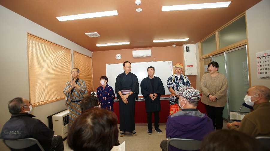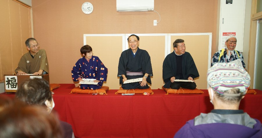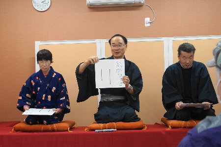 ![]() お待ちかね大喜利 暁亭こゆき(秋田市)、さくら亭名月(井川町)、参集亭田んぼ(地元] 、無々亭とんじゃく(地元)頓智の効いた解答 |