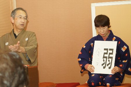 ![]() 竹へんに弱で「香港大火」 ![]() 金へんに弱で 「政治家」 ![]() 色へんに弱で 「ロマンス詐欺」 |