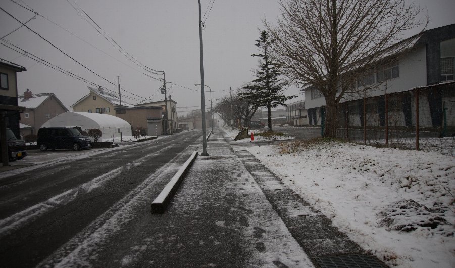 今朝7時の八郎潟町は