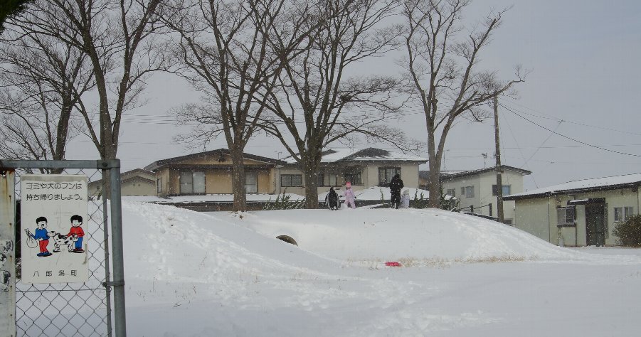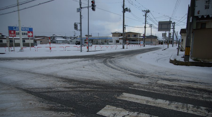 今朝7時の八郎潟町は
