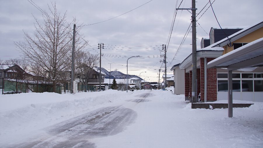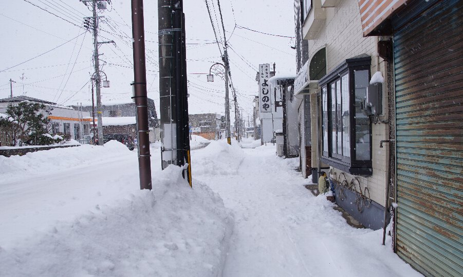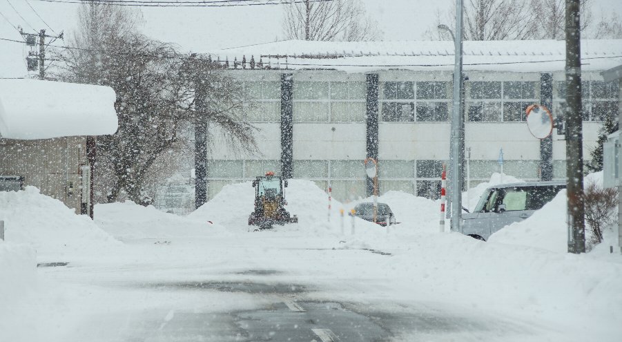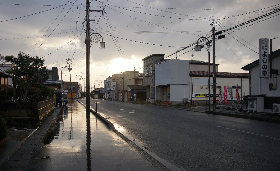 今朝7時の八郎潟町は