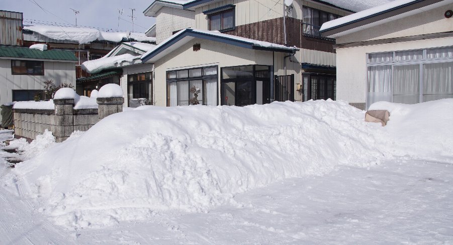 ![]() 職場は雪山が出来て横に2台しか止められない状態 |