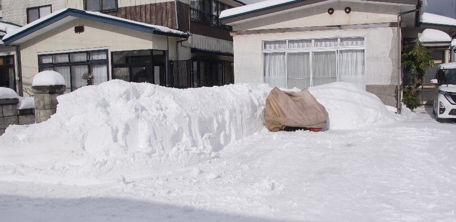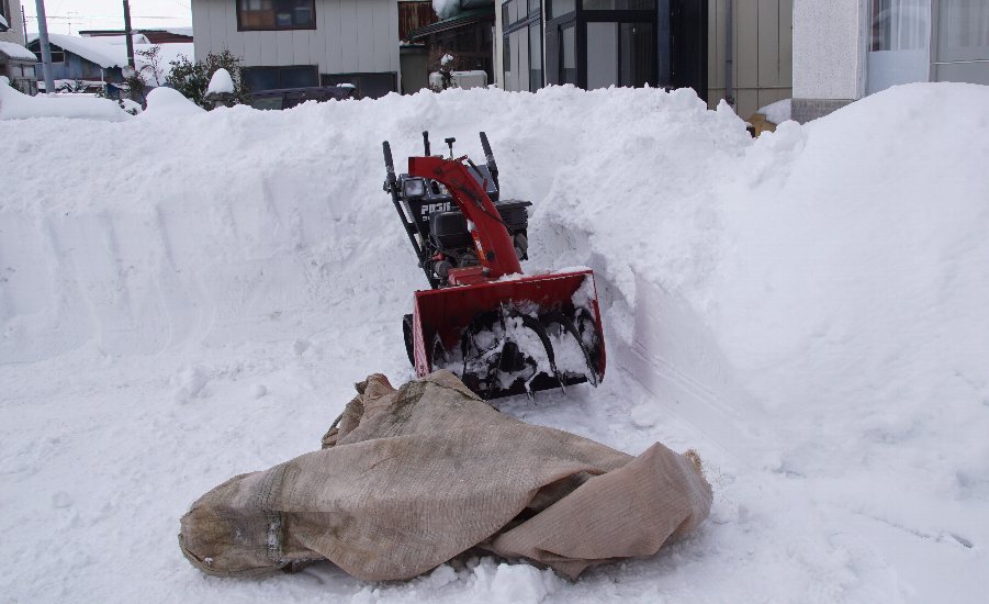![]() 1時間ほど活躍し雪山が小さくなりました 横に3台停められそうです |