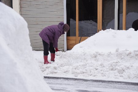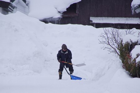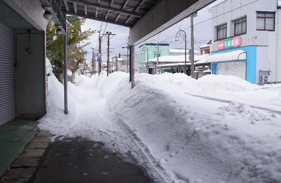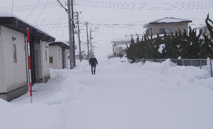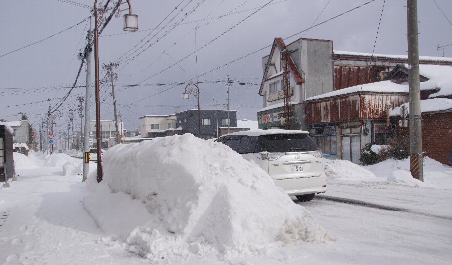 | 豪雪です。県道は雪山。 小路も車の交差が難しくなりました。 日中も気温が低く、積雪がなかなか解けない状態。 |