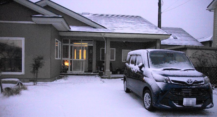 | 今朝は初雪。 -2℃ 昨夜から雪が降り始めて外は真っ白。 最近は熊の目撃情報が激減しましたがまだ危険と判断し、 日本語教室は来年まで休校となりました。 |