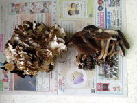 親戚の菅原幸喜さんから、彼が山から採ってきた天然のマイタケとハタシメジを戴いた。
