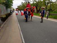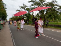 見学を終えた午後3時頃、致道博物館の駐車場に行ったら、道路に警察官数名が立ち交通整理をしてた。物好きな家内が警察官に何かあったですか?」と訪ねたところ、もうすぐ「荘内大祭」の行列が通るので交通整理に当たっているとの説明だった。せっかくの機会なので、「荘内大祭」の行列を見る事にした。待つこと約15分。勇壮な太鼓隊の後に、武者達・鉄砲隊・花嫁・神官達(約400名)の行列が続いた。もしも、予定とおり笹川流れの遊覧船に乗っていたら「荘内大祭」を見る事が出来なかっただろうなあ・・・神様が「荘内大祭」を見ていきなさいと予定を変更させて下さったと思った・・・午後3時40分頃、宿泊予定の瀬波温泉「瀬波ビューホテル」に向かう。午後5時20分頃ホテルに到着。すぐ温泉に入り、午後6時15分から食事。