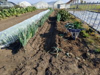 午後・自家用畑にニンニクの種と玉ねぎの苗を植える。