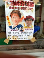 午後1時・大館市越山地区敬老感謝祭「歌謡・民謡・お笑いショー」に出演。今回の出演は余興を請け負った富士プロダクション代表・富士幸男氏のご厚意で実現。富士氏には漫談で何回もお世話になっている。有難い・感謝・・・