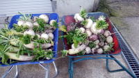 自家用畑から大根とカブの収穫。冬眠しない熊もいるようだが、我が家は冬眠の準備?