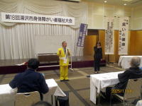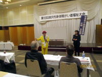 午前11時5分〜11時50分まで、湯沢市身体障がい者福祉協会(会長・麻生清美氏)主催の「福祉大会」で講演。出席者・約20名。場所・湯沢グランドホテル。今回の講演は、福祉協会の事務局である湯沢市社会福祉協議会の皆さんのご厚意で実現。湯沢市社会福祉協議会さんには講演で何回もお世話になっている。有難い感謝・・・ピンピンコロリ・選挙漫談・血液型と人間関係の話をする。手話通訳付きの講演だった。