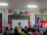 午後1時30分〜2時30分まで医療法人 仁恵会障害者総合支援事業所「松風」(施設長・柴田聡氏)主催の「松風祭」(実行委員長・阿部清登氏)で講演。出席者・約50名。場所・「松風」。今回の講演は、実行委員長・阿部清登氏のご推薦で実現。有難い・感謝・・・ピンピンコロリ・選挙漫談・血液型と人間関係の話をする。私の講演の前に、ごやさん(越後谷利秋氏)の「ギター弾き語り」があった。他に販売コーナー、軽食・喫茶コーナー、屋台、実演コーナー等も設けられていた。