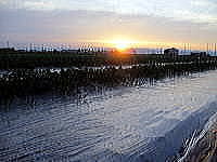 日の出を拝んだ!午前4時30分・4月27日植えた西瓜普通栽培の展開する床にポリ敷き。