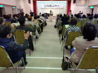 午後1時30分〜3時30分・横手市結核予防婦人会雄物川支部主催の「こころの癒しコンサート」に出席。出席者・約100名。会場・雄物川コミュニティセンター。出演・トレ コンアモーレ。コンアモーレは音楽用語で「愛情を持って」の意味。うた・小野崎彰子さん マンドリン・荻田ヒサ子さん ピアノ・木下裕美さん。