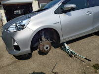 午前・乗用車の冬タイヤを夏タイヤに替える。水稲育苗用の床土運び。