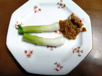 夕食時、青ニンニクに味噌を付けて食べた。大変贅沢食べ方、美味しい・美味しい・・・・